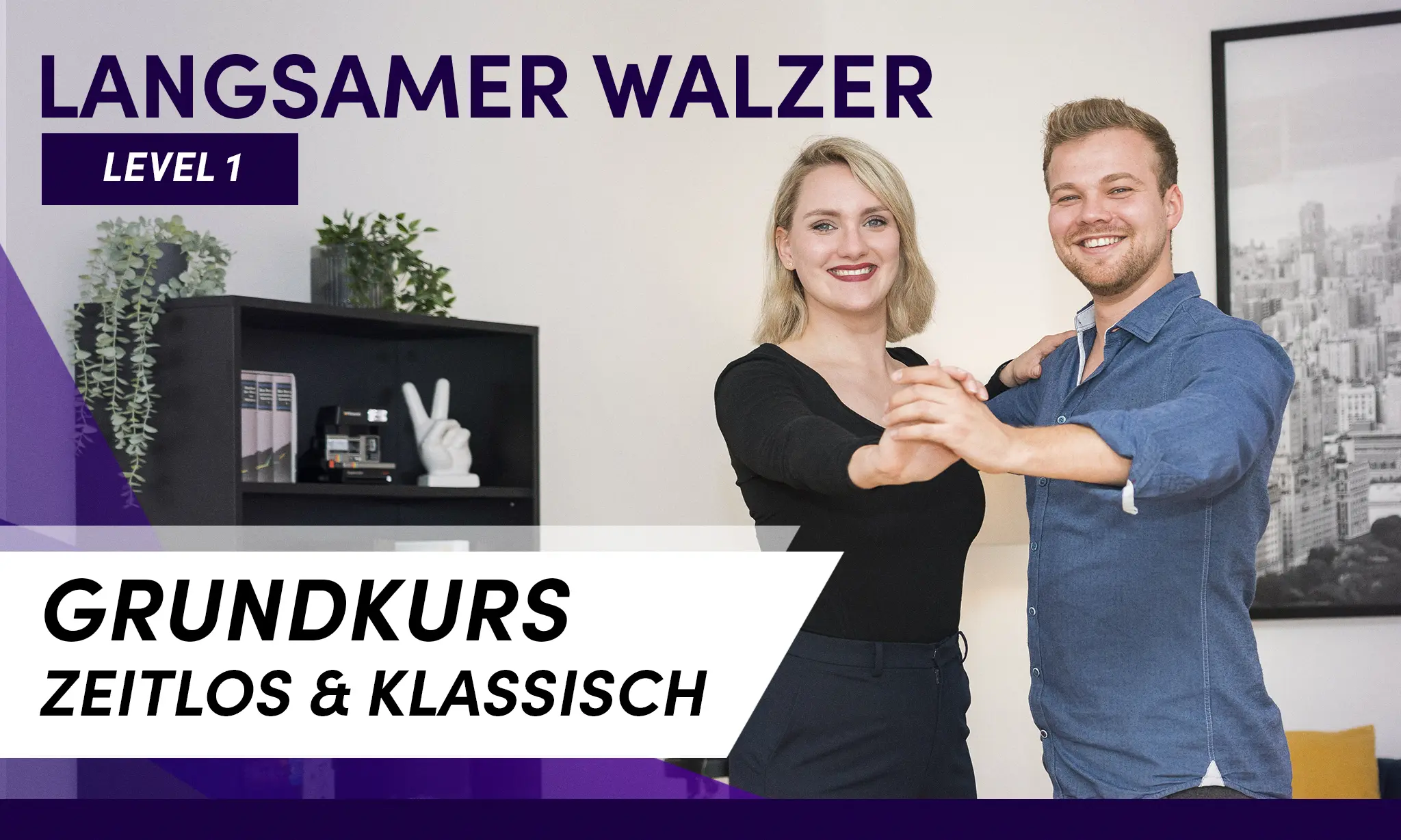 Der Grundkurs vermittelt euch alle wichtigen Grundlagen des Langsamen Walzers von Anfang an. Ihr lernt den Grundschritt, die grundlegende Technik, Führen und Folgen, das Rhythmusgefühl sowie das sichere Zusammenspiel im Paar. Die Inhalte bauen systematisch aufeinander auf und geben euch ein stabiles Fundament, um sicher und frei tanzen zu können.